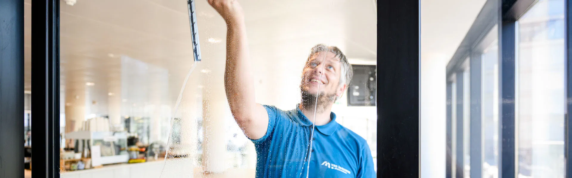 Nooit meer zorgen over het onderhoud en de uitstraling van uw pand. Onze glazenwassers laten uw pand stralen.
